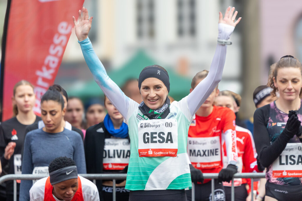 Voll konzentriert geht Gesa Krause in ihr erstes DM-Rennen des Jahres 2026 für den Silvesterlauf-Verein.