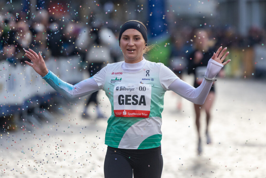 Sie schloss das Jahr 2025 beim Heimrennen in Trier als Sechste im Konfettiregen ab: Gesa Krause