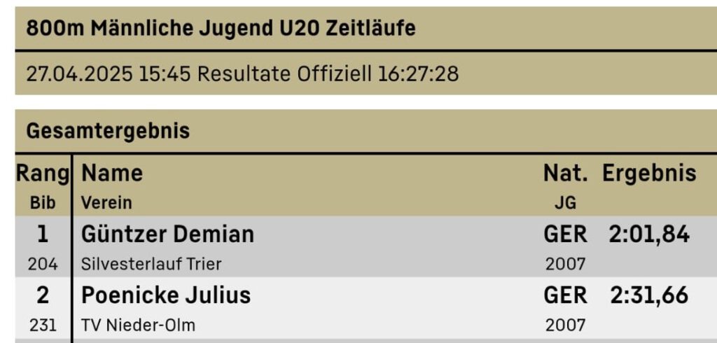 In London übrigens setzte sich Sebastian Anthony an Position zwei der Vereins-Jahresbestenliste im Marathon: Bei 2:28:30 Stunden blieben die Uhr für den seit 2023 zur internationalen Silvesterlauf-Trainingsgruppe zählenden Briten stehen. Nicht ganz seinen Erwartungen entsprechend, denn Seb hatte über die 42,195-km-Distanz eine Reise in Richtung der 2:20-Stunden-Marke geplant. Dennoch schob Anthony sich in der vereinsinternen Rangliste 2025 hinter Samuel Fitwi (2:06:29), aber vor Yannik Erz (2:29:50), Mathis Kaufmann (2:29:56) und Andre Ramisch (2:34:37) auf Rang zwei.