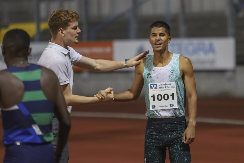 „Jedes Rennen ein Höhepunkt, und dann kam dauernd noch einer, und noch einer, und noch einer…“, schwärmte Silvesterlauf-Vereinstrainer Yannik Duppich zu später Stunde in der Null-Fünf-Lounge unter dem Stadiondach (Danke an Eintracht Trier für die Kooperation!). Tatsächlich: Im abschließenden internationalen Rennen verfehlte der Spanier Mohamed Attaoui über 1000 Meter um die Winzigkeit von sieben Hundertstelsekunden den Europarekord des legendären Sebastian Coe (aktuell Präsident des Weltverbandes World Athletics) aus dem Jahr 1981. Am Weltrekord von Kenias Olympiasieger Noah Ngeny fehlten lediglich 0,29 Sekunden. Platz fünf über 800 Meter belegte der 23-jährige Attaoui 14 Tage nach Trier im WM-Rennen von Tokio. Eine Olympiamedaille 2028 in Los Angeles hat der Vize-Europameister fest im Visier.