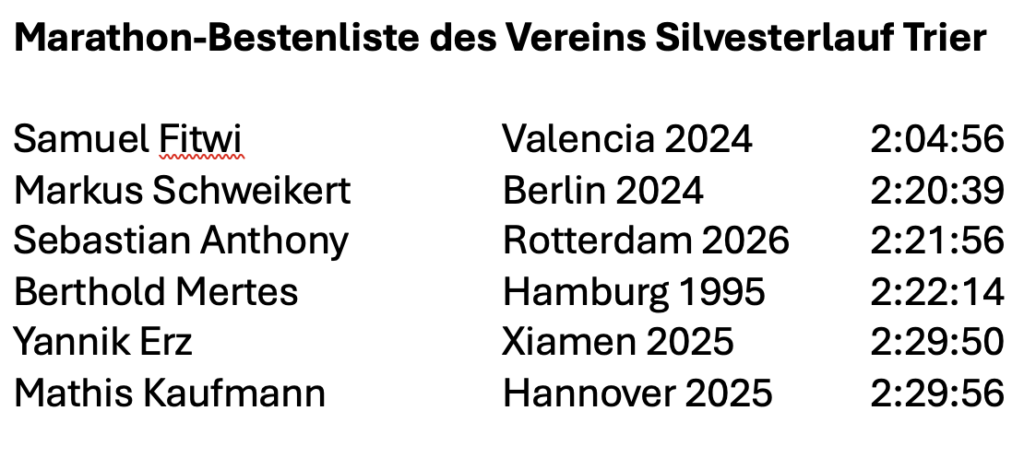2:21:56 Stunden bedeuten dennoch eine stolze PB für den 29-Jährigen, der den Wechsel vom Bahn- zum Straßenläufer 2023 vollzogen hatte und weiterhin von Yannik Duppich beraten wird. Während seines Studiums in den USA war “King” Seb, wie er im Anschluss an einen Silvesterlauf-Teamsieg beim Drittelmarathon in Dormagen-Straberg “getauft” wurde (Foto), in erster Linie als Bahnläufer in Erscheinung getreten. Aus Übersee brachte Sebastian Bestzeiten von 1:47,54 Minuten (weiterhin 800-Meter-Rheinlandrekord) sowie 3:44,68 Minuten (1500 Meter) mit.
