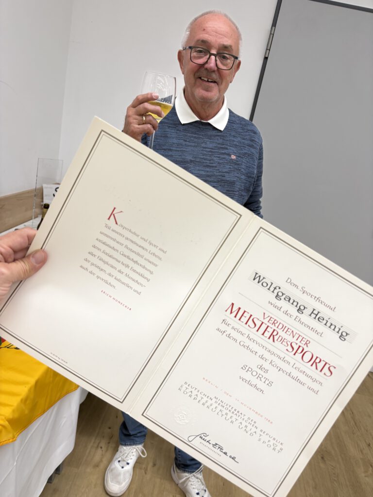 Da stand er nun mit Blick auf rund 70 Persönlichkeiten des deutschen Laufsports und rang im Überschwang seiner Gefühle um Worte: „Ich bin erschlagen, was soll ich sagen?“, äußerte Wolfgang Heinig mit belegter Stimme und gab sich Mühe, die Tränen der Rührung zu verdrücken. Geboren am 27. Juli 1951 im sächsischen Torgau, gilt Heinig als seit Jahren erfolgreichster deutscher Lauftrainer nicht nur wegen der überragenden Leistungen von Gesa Krause. Seit 50 Jahren sind mehrere Generationen deutscher Topathletinnen und -athleten durch Heinigs Schule gegangen. Deshalb waren Dutzende von ihnen am vergangenen Samstag teilweise von weit her in die Zentrale des Deutschen Olympischen Sportbundes in die Frankfurter Otto-Fleck-Schneise gekommen, um dem 74-Jährigen ihre Ehre zu erweisen. Selbstverständlich dabei Gesa Krause und Olivia Gürth, die beiden Ausnahmekönnerinnen des Vereins Silvesterlauf Trier.