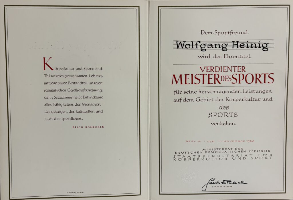 „Sehr vieles im DDR-Sport war gut“, sagt Heinig dennoch: „Wir brauchten uns um nichts Organisatorisches zu kümmern, Trainingslager und Reisen waren finanziert.“ Trotzdem war seine erste Reaktion nach dem Vorkommnis von Nagoya mehr als verständlich: „Ich habe zu Katrin gesagt, jetzt reicht es. Lass uns rübermachen.“ Sie machten nicht rüber, um nicht Repressalien gegen Verwandte zu riskieren. Die Auszeichnung “Meister des Sports”, verliehen von oberster Stelle der Regierung und höchste Anerkennung im DDR-Sport, macht ihn unverändert stolz. Inzwischen trifft der Titel mehr denn je zu. Eines seiner wertvollsten Meisterwerke ist die Karriere von Gesa Krause. Die 33-Jährige, die 2026 ihre zehnte Saison im Verein Silvesterlauf Trier bestreitet, wurde in ihrer Karriere je zweimal Europameisterin und WM-Dritte im 3000-Meter-Hindernislauf. Aktuell gilt Heinigs Fokus Gesas Marathondebüt am 7. Dezember in Valencia.
